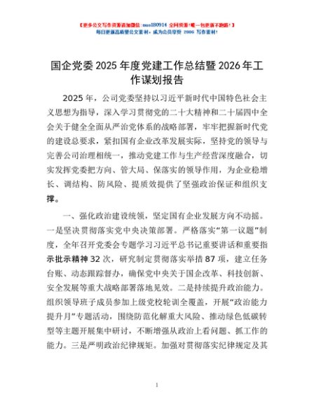 / 国企党委2025年度党建工作总结暨2026年工作谋划报告
