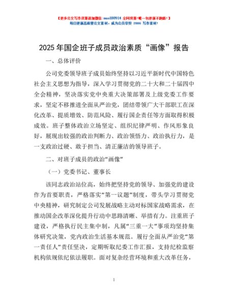 / 2025年国企班子成员政治素质“画像”报告