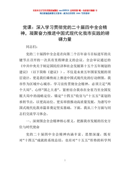 / 党课:深入学习贯彻党的二十届四中全会精神,凝聚奋力推进中国式现代化我市实践的磅礴力量