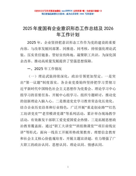 / 2025年度国有企业意识形态工作总结及2026年工作计划