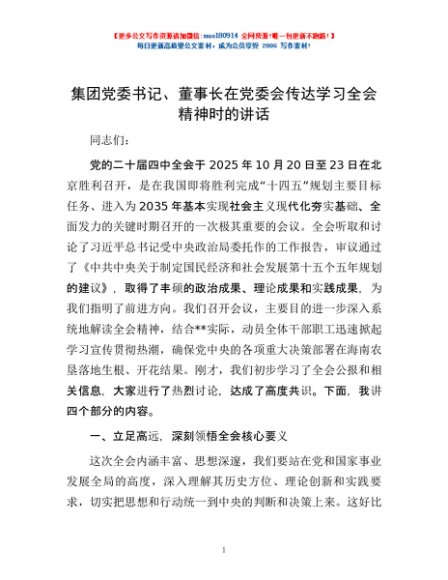 / 集团党委书记、董事长在党委会传达学习全会精神时的讲话