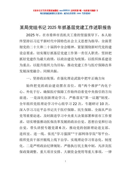 / 某局党组书记2025年抓基层党建工作述职报告