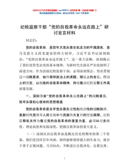 纪检监察干部“党的自我革命永远在路上”研讨发言材料
