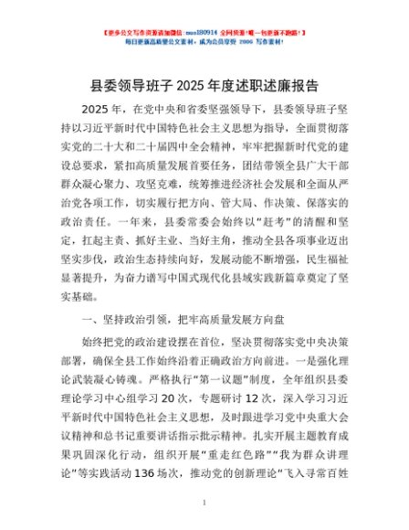 / 县委领导班子2025年度述职述廉报告