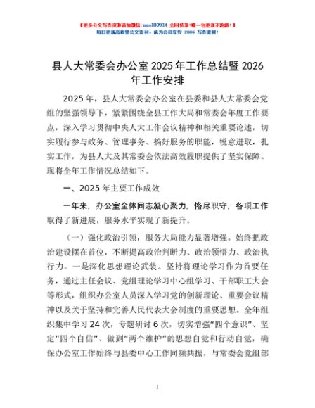 / 县人大常委会办公室2025年工作总结暨2026年工作安排