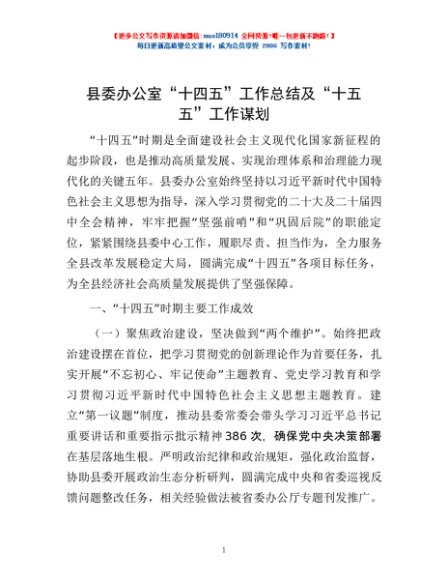 / 县委办公室“十四五”工作总结及“十五五”工作谋划