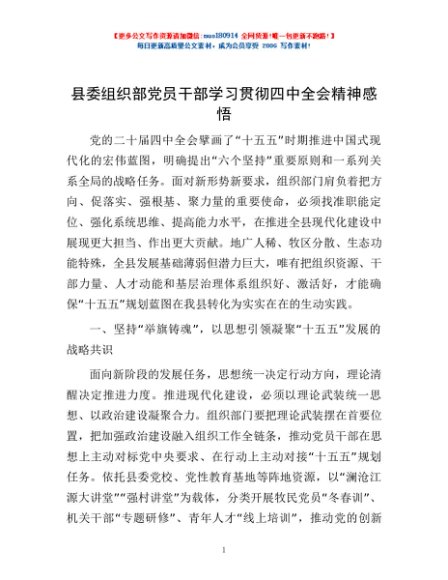 / 县委组织部党员干部学习贯彻四中全会精神感悟