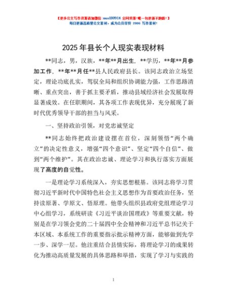 / 2025年县长个人现实表现材料