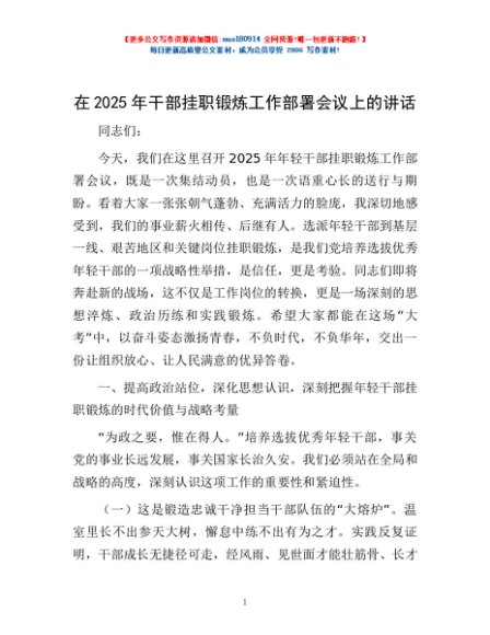/ 在2025年干部挂职锻炼工作部署会议上的讲话