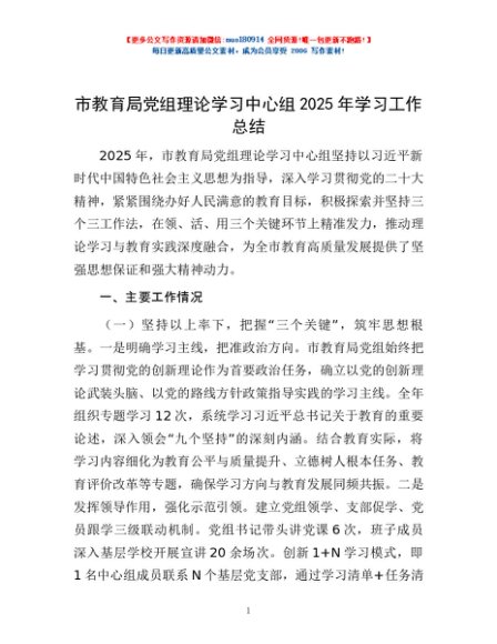 / 市教育局党组理论学习中心组2025年学习工作总结