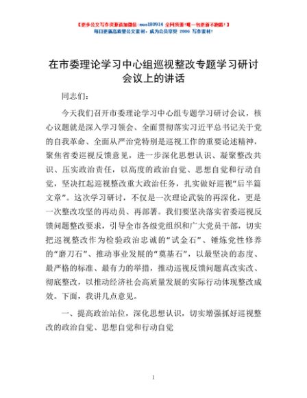/ 在市委理论学习中心组巡视整改专题学习研讨会议上的讲话