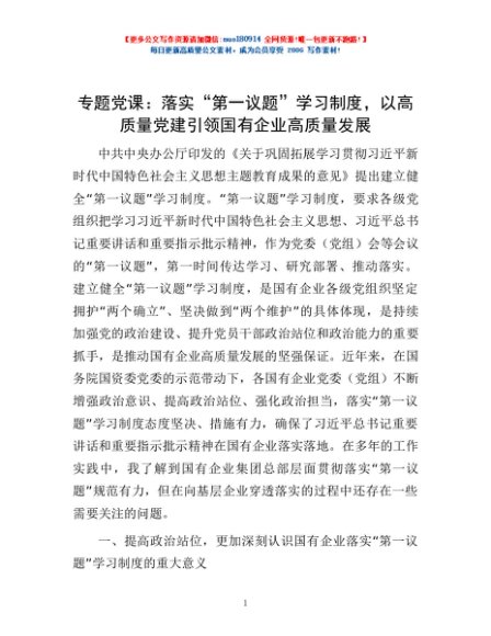 / 专题党课:落实“第一议题”学习制度,以高质量党建引领国有企业高质量发展