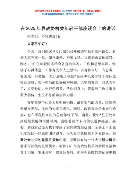 / 在2025年县政协机关年轻干部座谈会上的讲话