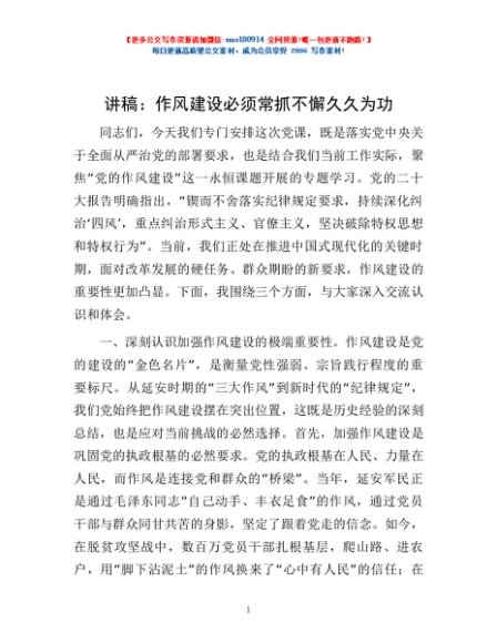 / 讲稿:作风建设必须常抓不懈久久为功