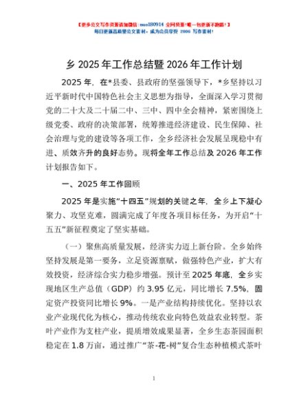 乡2025年工作总结暨2026年工作计划