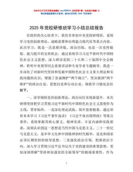 / 2025年党校研修班学习小结总结报告