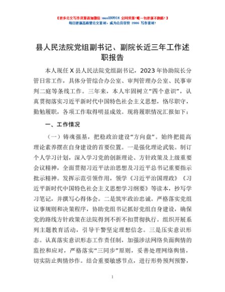 / 县人民法院党组副书记、副院长近三年工作述职报告
