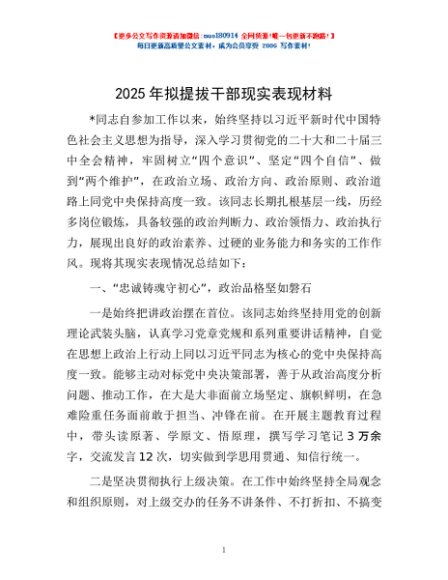 / 2025年拟提拔干部现实表现材料