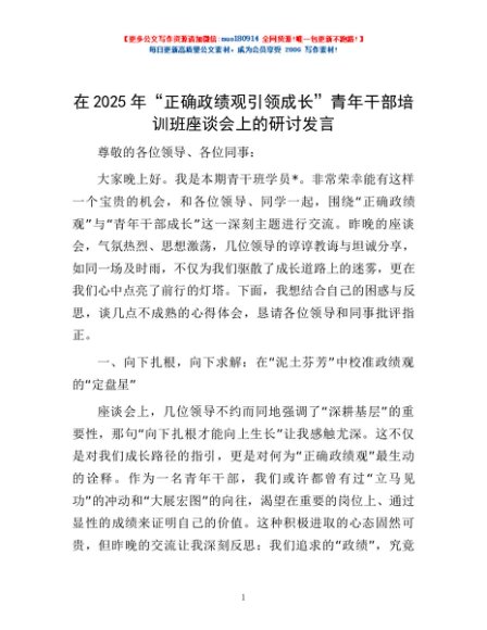 / 在2025年“正确政绩观引领成长”青年干部培训班座谈会上的研讨发言