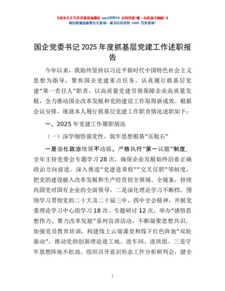 / 国企党委书记2025年度抓基层党建工作述职报告