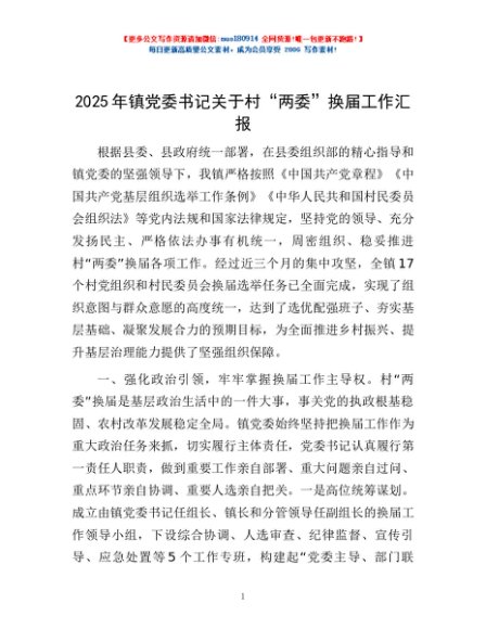 / 2025年镇党委书记关于村“两委”换届工作汇报