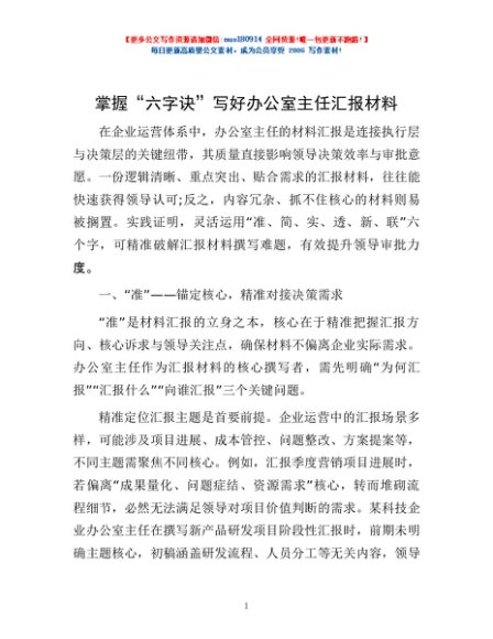 / 掌握“六字诀”写好办公室主任汇报材料
