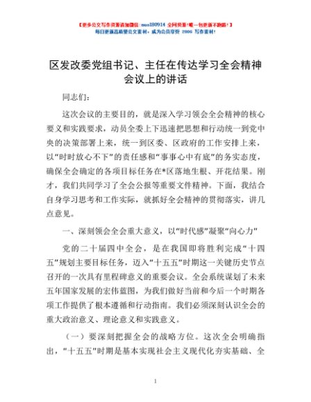 / 区发改委党组书记、主任在传达学习全会精神会议上的讲话
