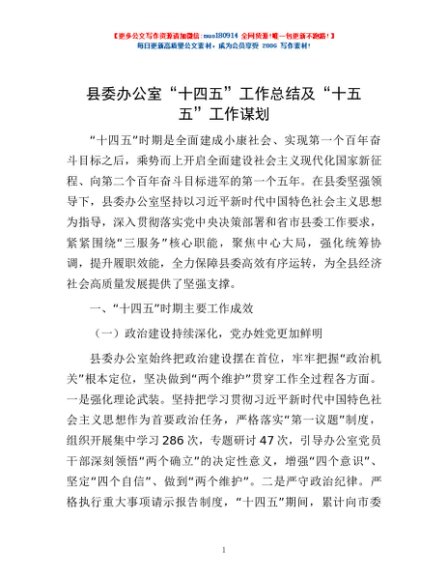 / 县委办公室“十四五”工作总结及“十五五”工作谋划