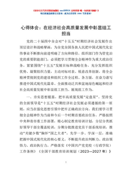 / 心得体会:在经济社会高质量发展中彰显组工担当