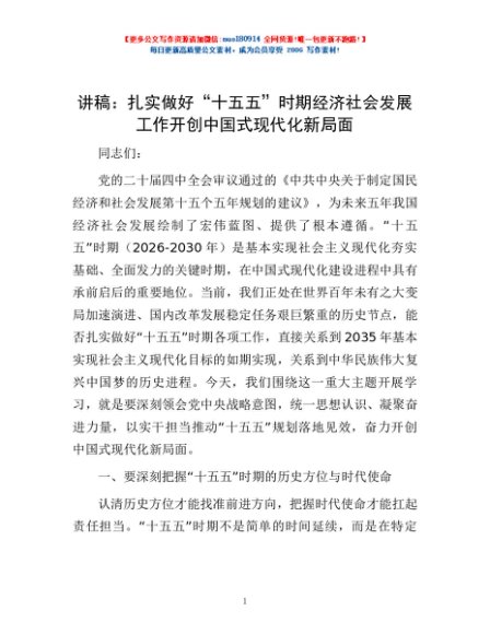 / 讲稿:扎实做好“十五五”时期经济社会发展工作 开创中国式现代化新局面