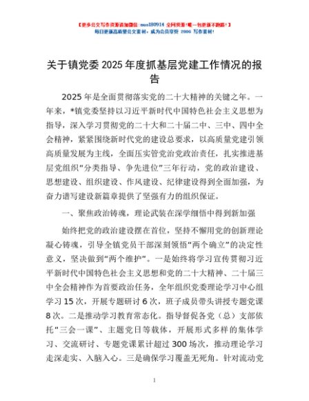 / 关于镇党委2025年度抓基层党建工作情况的报告