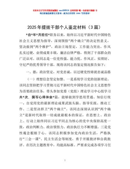 / 2025年提拔干部个人鉴定材料(3篇)