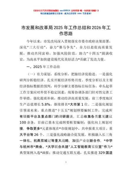 / 市发展和改革局2025年工作总结和2026年工作思路