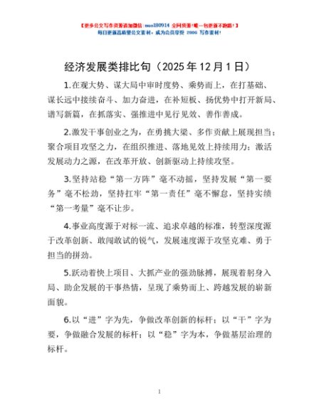 / 经济发展类排比句(2025年12月1日)