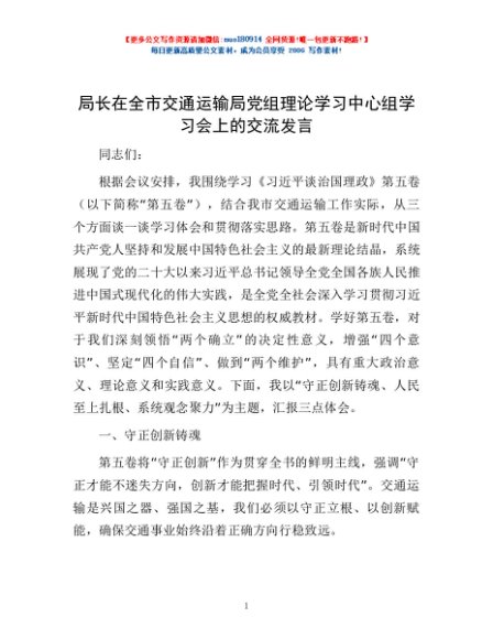 / 局长在全市交通运输局党组理论学习中心组学习会上的交流发言