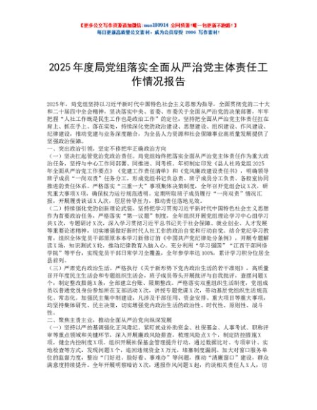 / 2025年度局党组落实全面从严治党主体责任工作情况报告