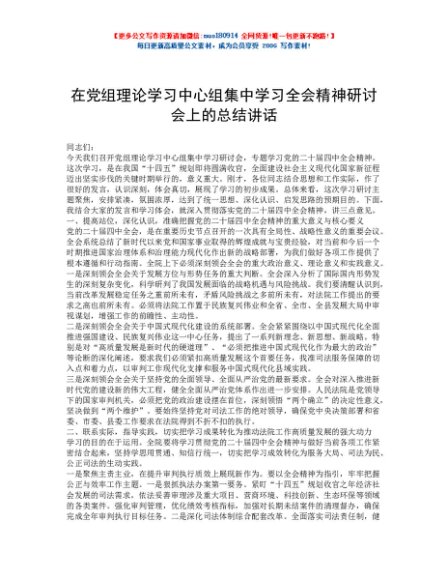 / 在党组理论学习中心组集中学习全会精神研讨会上的总结讲话