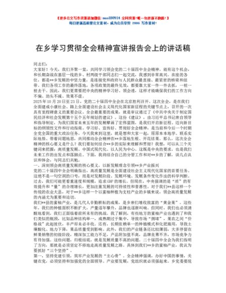 / 在乡学习贯彻全会精神宣讲报告会上的讲话稿