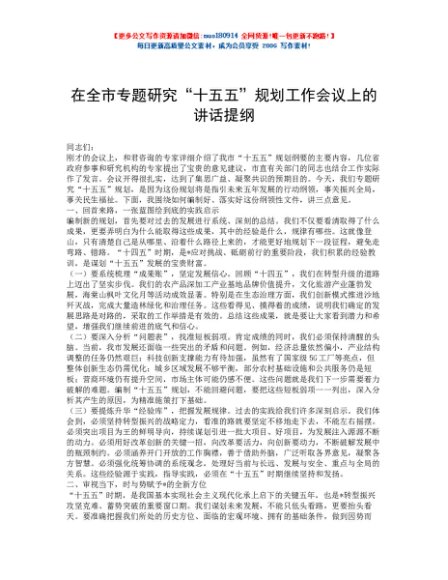 / 在全市专题研究“十五五”规划工作会议上的讲话提纲
