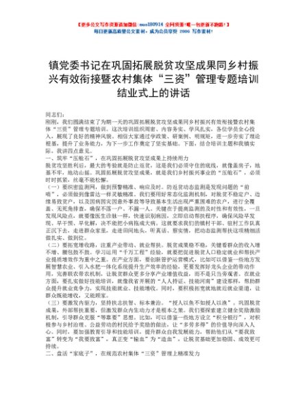 / 镇党委书记在巩固拓展脱贫攻坚成果同乡村振兴有效衔接暨农村集体“三资”管理专题培训结业式上的讲话