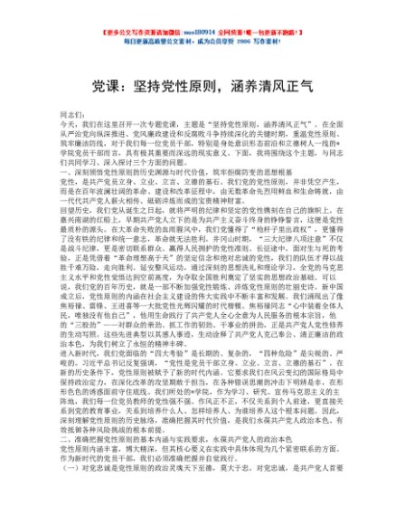 / 党课:坚持党性原则,涵养清风正气