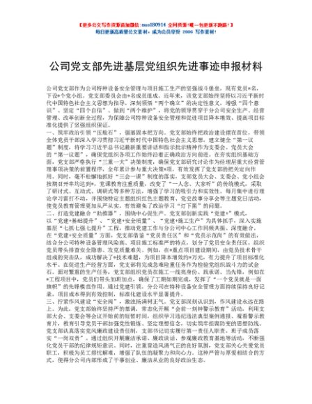 / 公司党支部先进基层党组织先进事迹申报材料