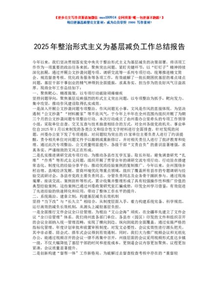 / 2025年整治形式主义为基层减负工作总结报告