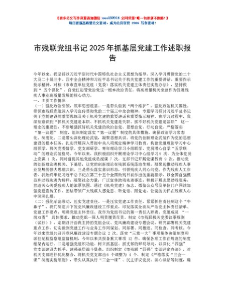 / 市残联党组书记2025年抓基层党建工作述职报告
