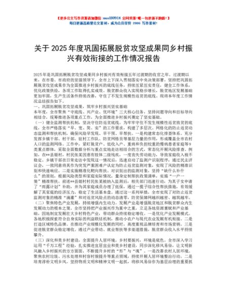/ 关于2025年度巩固拓展脱贫攻坚成果同乡村振兴有效衔接的工作情况报告