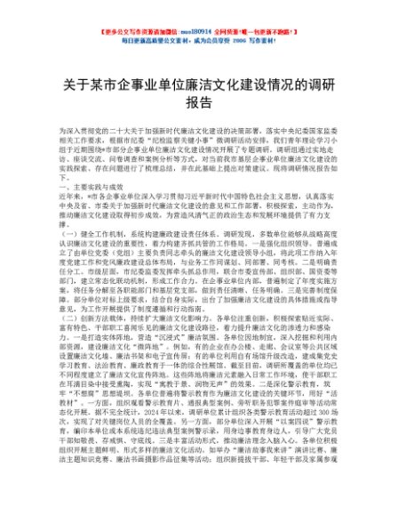 / 关于某市企事业单位廉洁文化建设情况的调研报告
