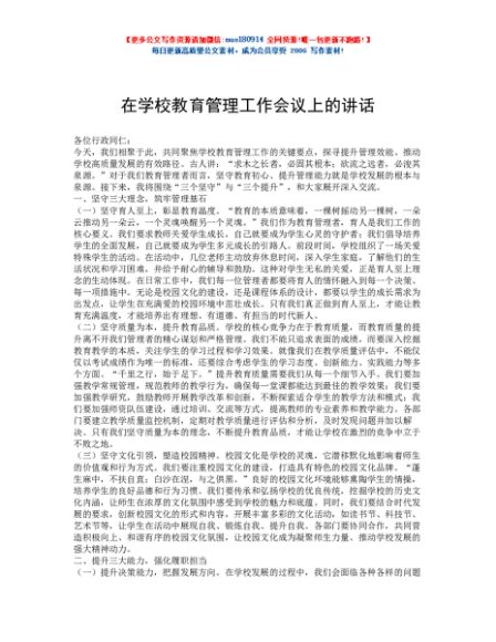 / 在学校教育管理工作会议上的讲话