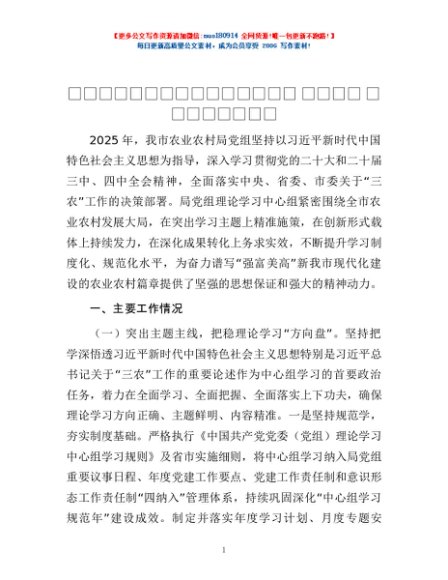 / 市农业农村局党组理论学习中心组2025年度学习工作总结