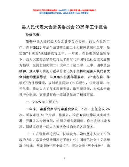 / 县人民代表大会常务委员会2025年工作报告