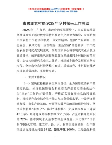/ 市农业农村局2025年乡村振兴工作总结